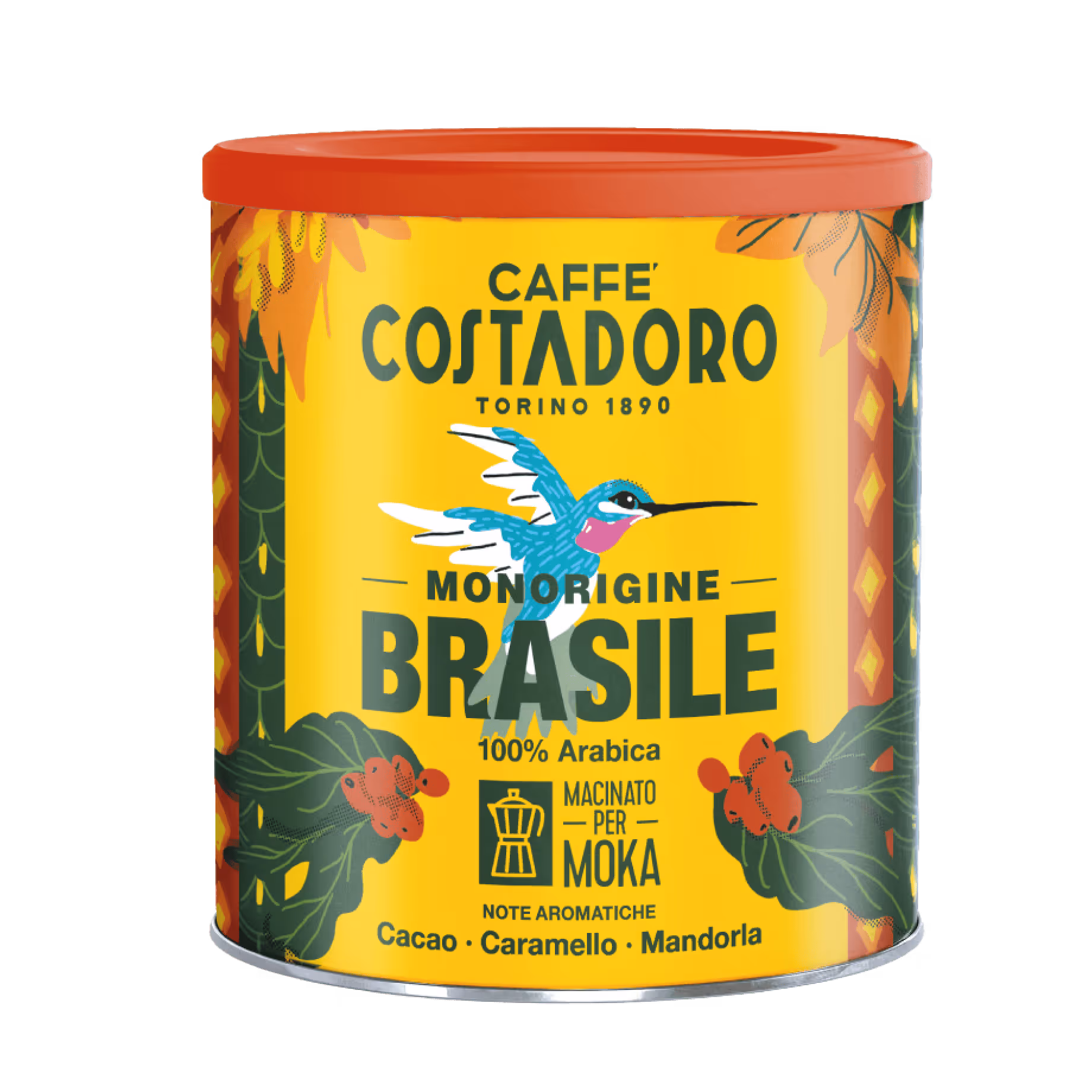 Miscela di caffè macinato per la casa, ideale per le estrazioni con la moka, alta qualità 100% Arabica, per ritrovare in tazzina tutto il gusto del caffè Costadoro.Scegli un piacevole risveglio con il profumo tradizionale del caffè Costadoro Arabica per Moka e lasciati avvolgere dal sapore dolce ed equilibrato, con sentori di cacao, caramello e mandorla.La tostatura e la macinatura del caffè macinato per moka Monorigine Brasile ne esaltano le caratteristiche con ogni tipo di caffettiera moka.